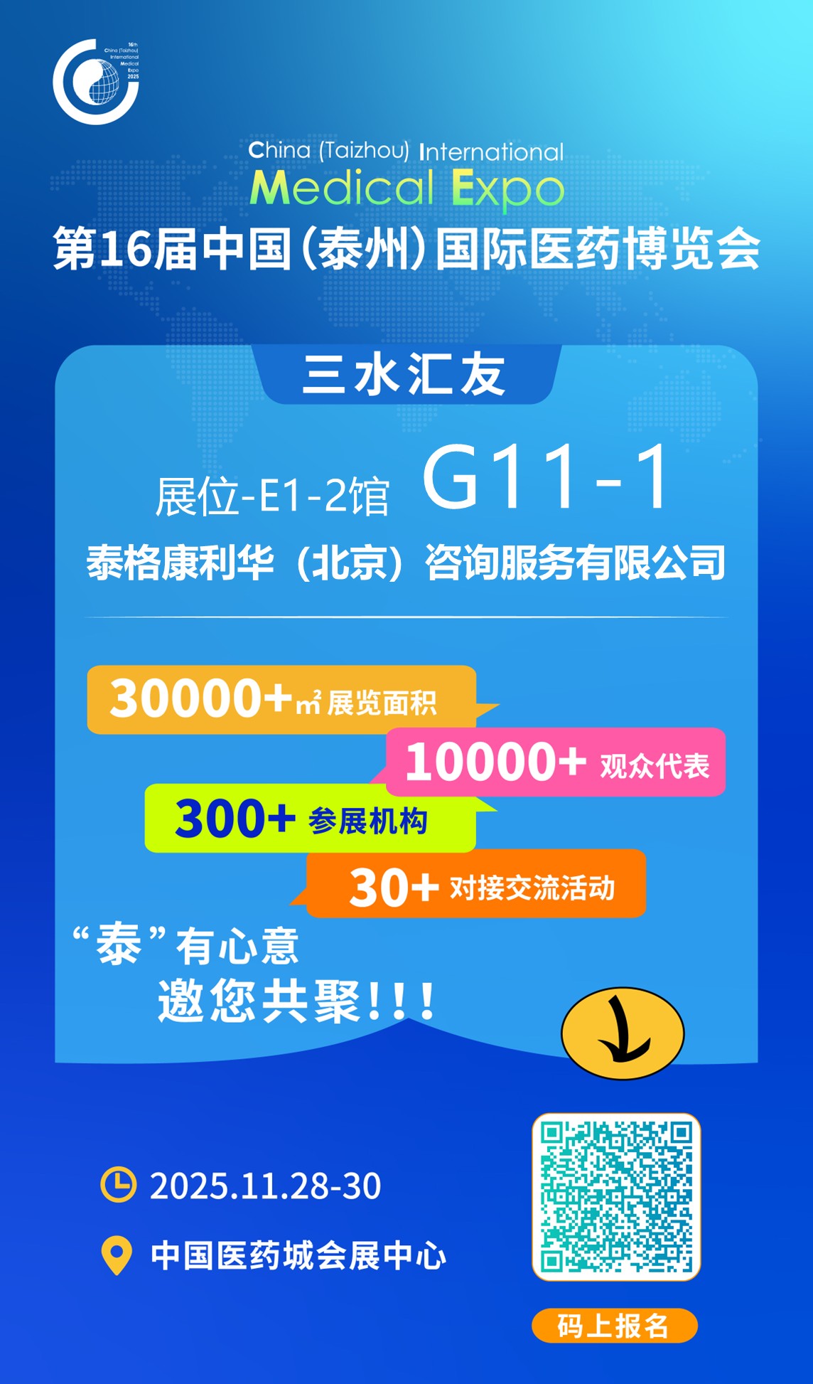 深耕27年,作为业内规模最大、业绩最多、最为专业的咨询公司之一,泰格康利华将在医博会E1-2馆 G11-1展位,与您共议全球制药行业挑战,分享本土实战经验。我们提供从药品注册到GMP合规的一站式出海解决方案,助力企业成功开拓全球市场。
